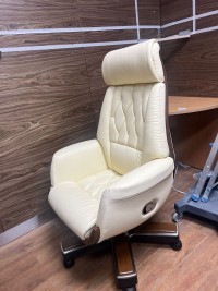 Классическое кресло с простежкой спинки типа «каретная стяжка», выполнено из натуральной кожи высшего качества. Кресло оснащено синхро-механизмом, с фиксацией наклона в любом положении. Вставки из натурального дерева гармонично интегрированы в корпус кресла.